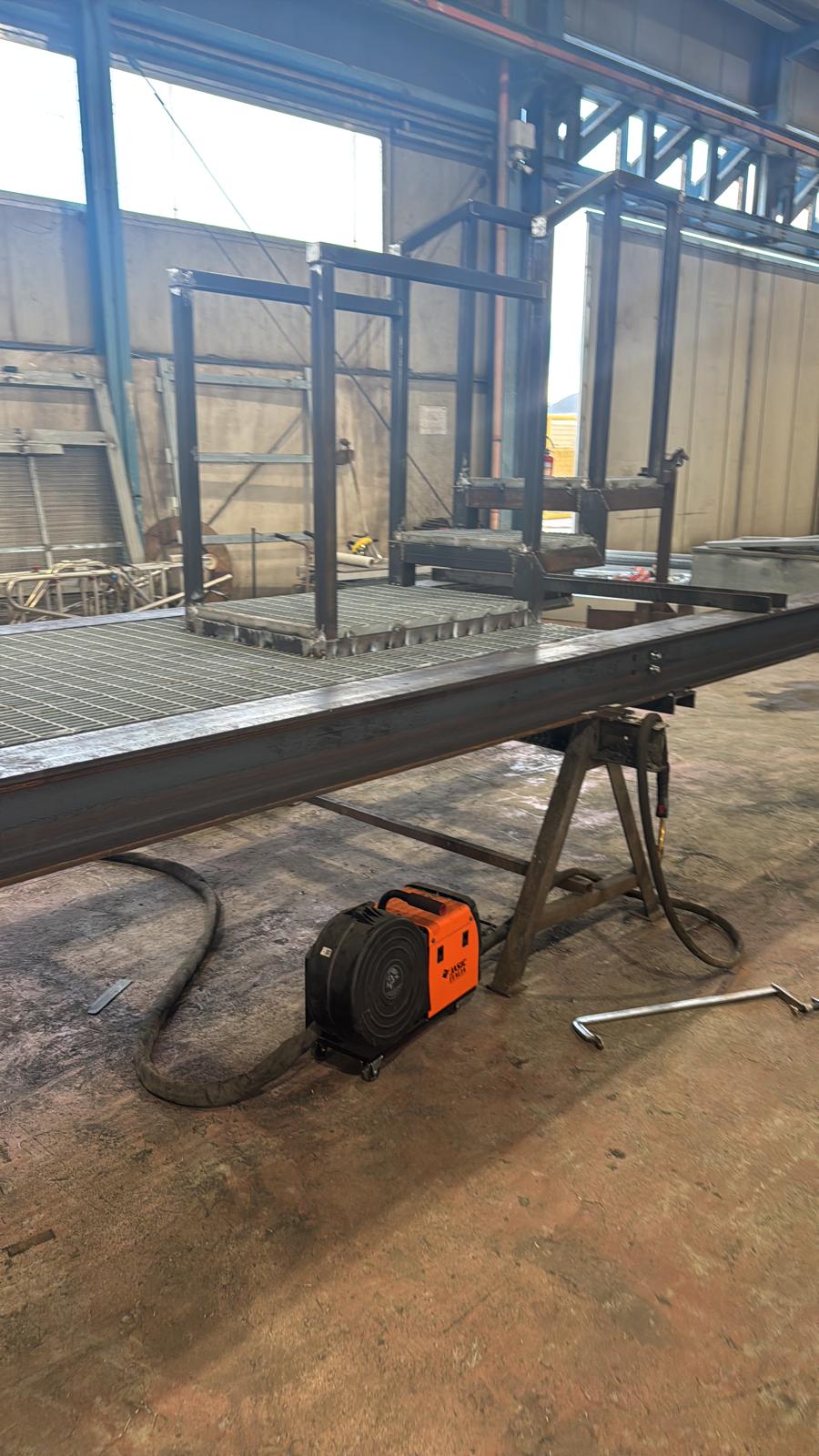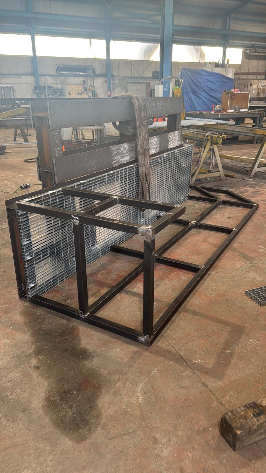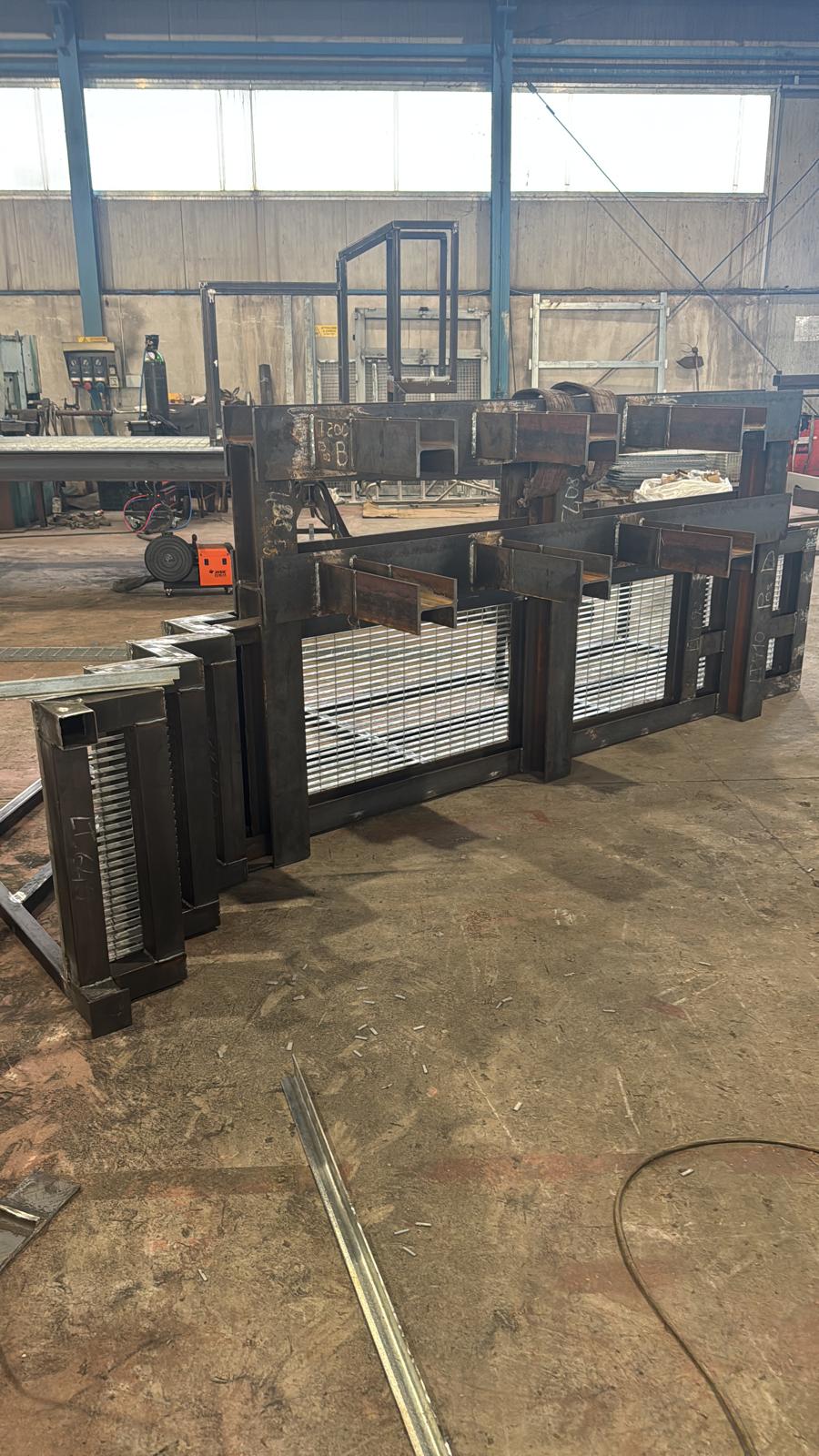 Struttura in parte mobile, in parte fissa realizzata per ... , con profili in Heb 140 ed Heb 100. La piattaforma è poi costruita da ringhiera perimetrale in tubolare nero e scaletta di accesso su pedana fissa.