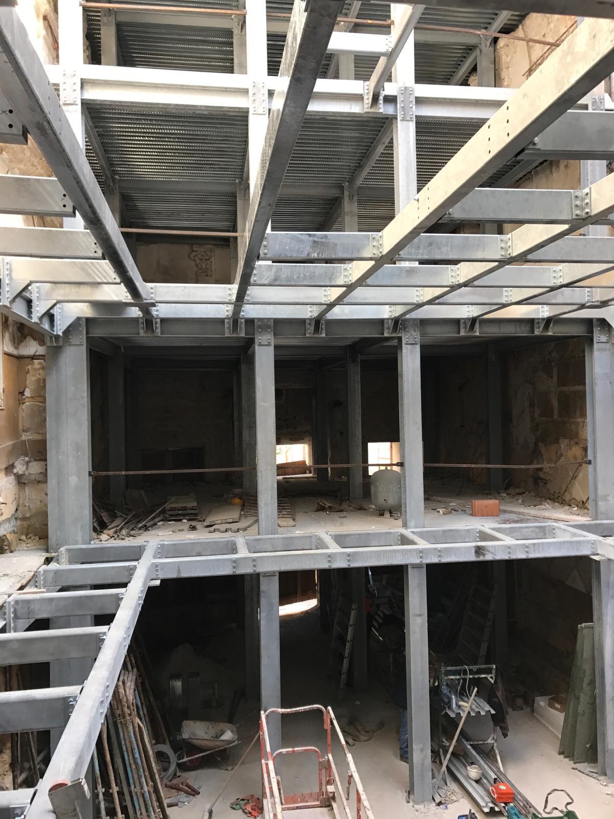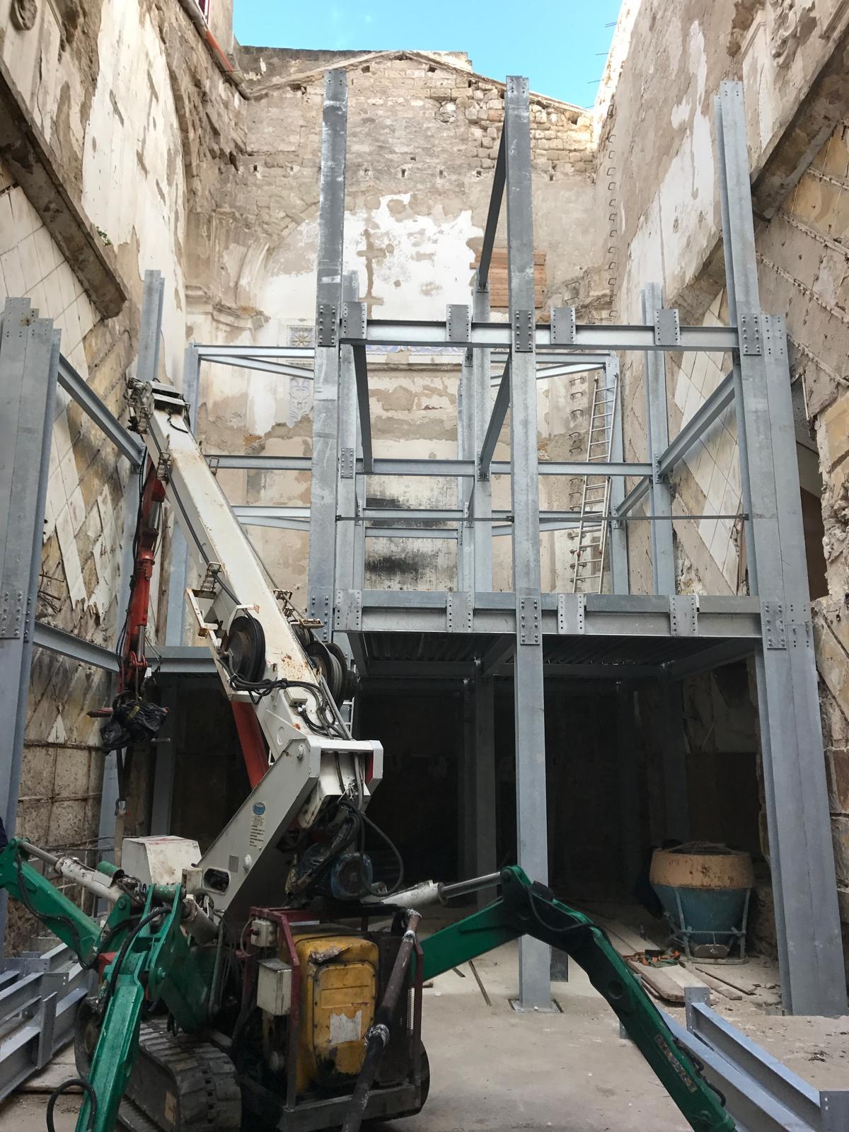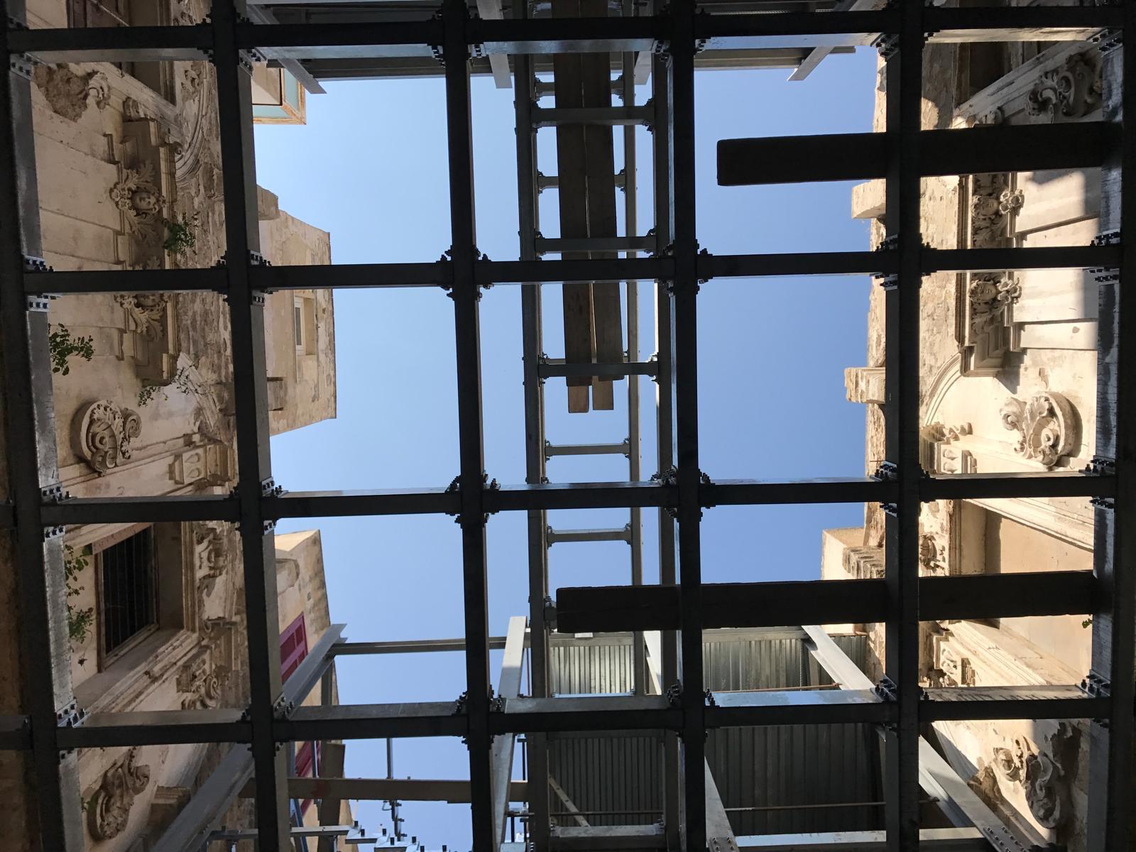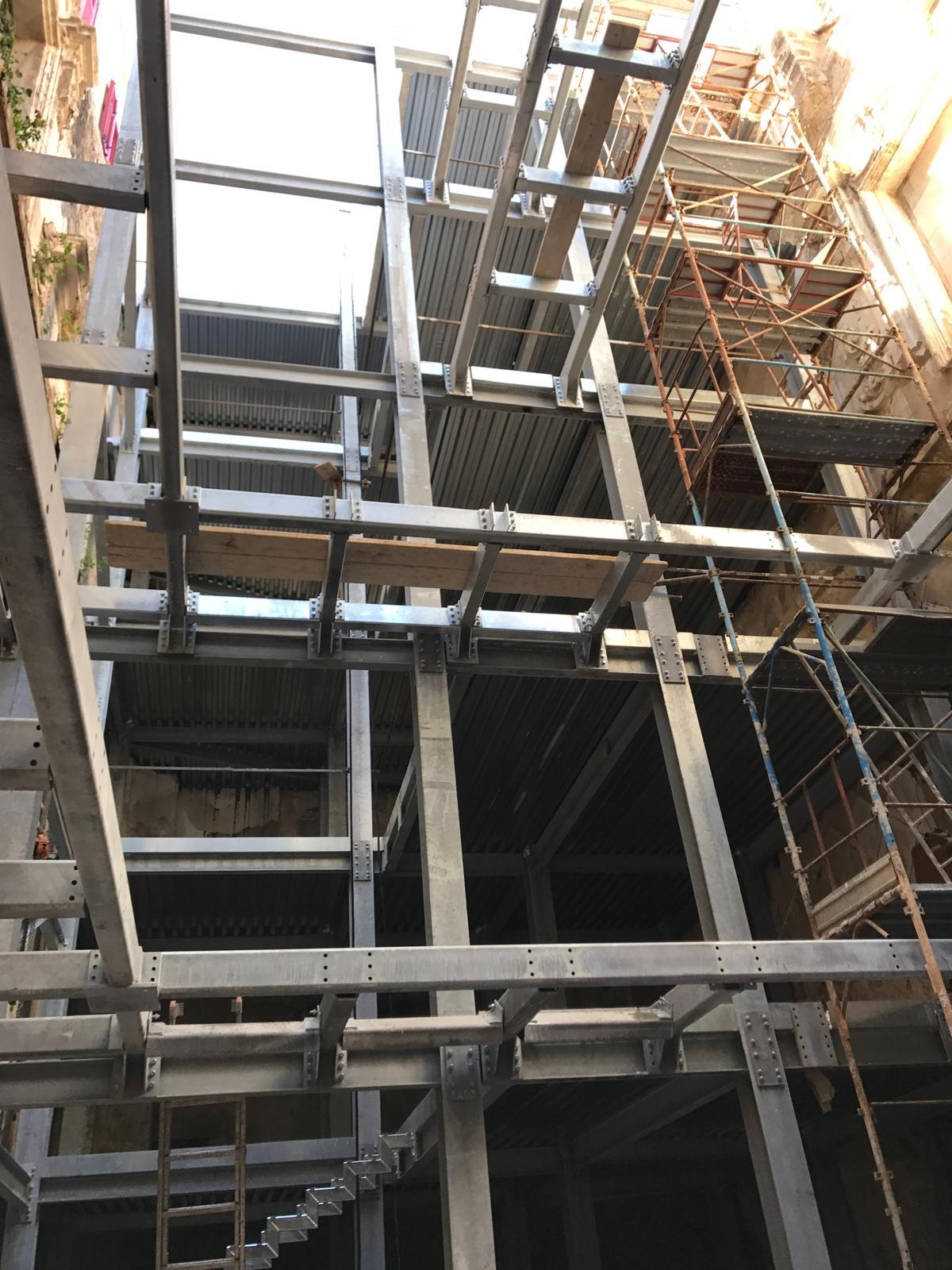 Fornitura e posa in opera di struttura multipiano con annesse passerella, scala interna e struttura ascensore, realizzata nel centro storico di Trapani, e da inserire all’interno di un edificio che ospiterà negozi ed appartamenti.
