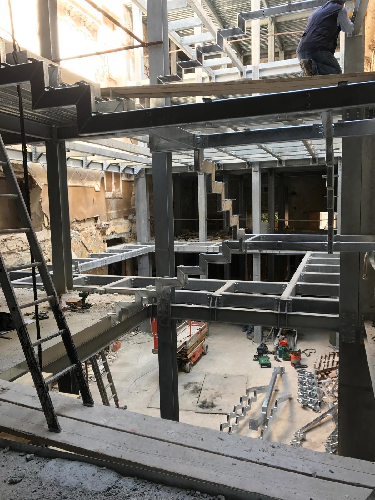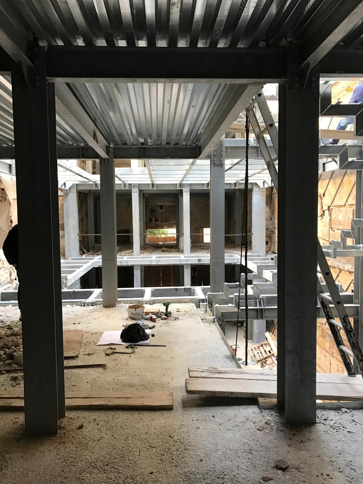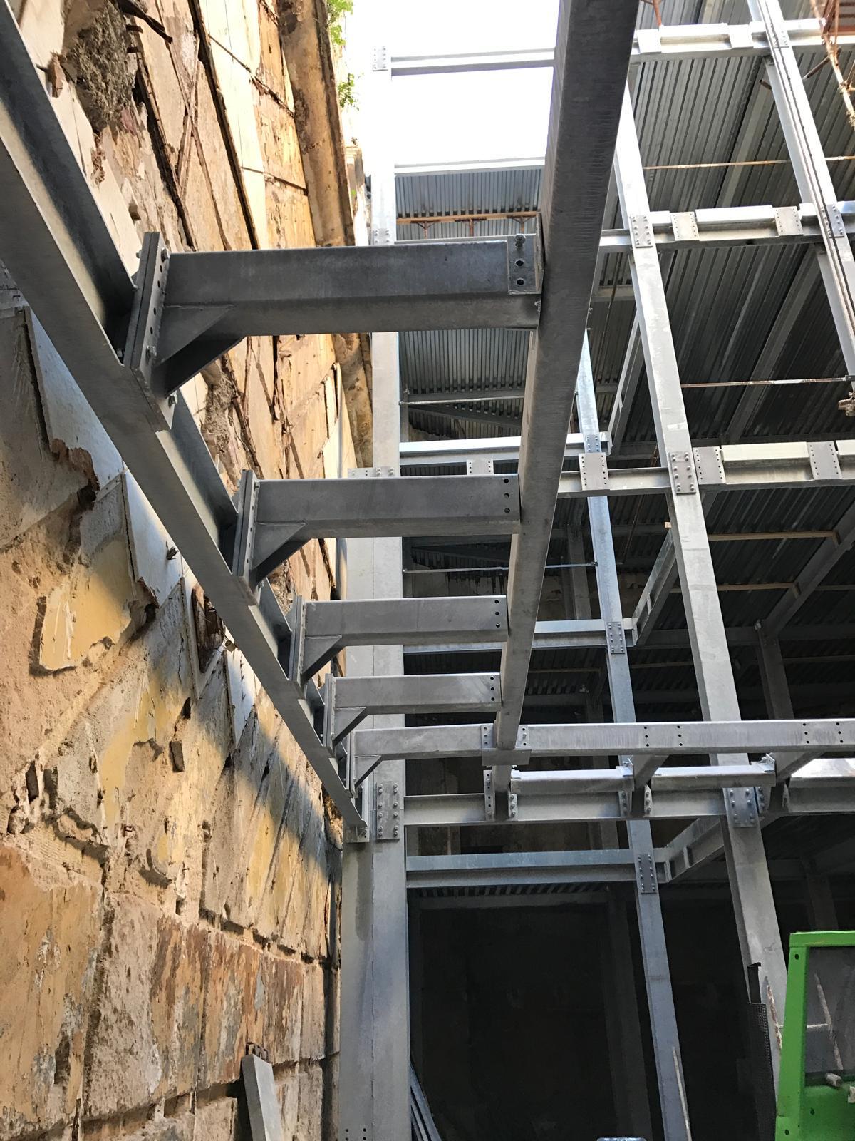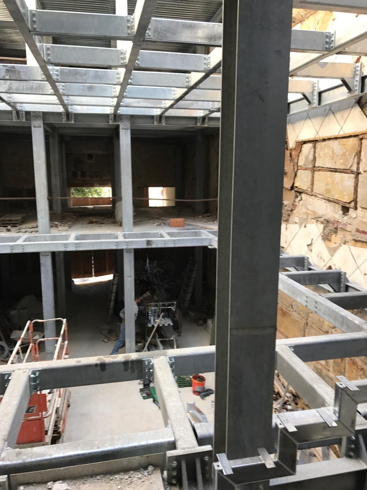 Fornitura e posa in opera di struttura multipiano con annesse passerella, scala interna e struttura ascensore, realizzata nel centro storico di Trapani, e da inserire all’interno di un edificio che ospiterà negozi ed appartamenti.