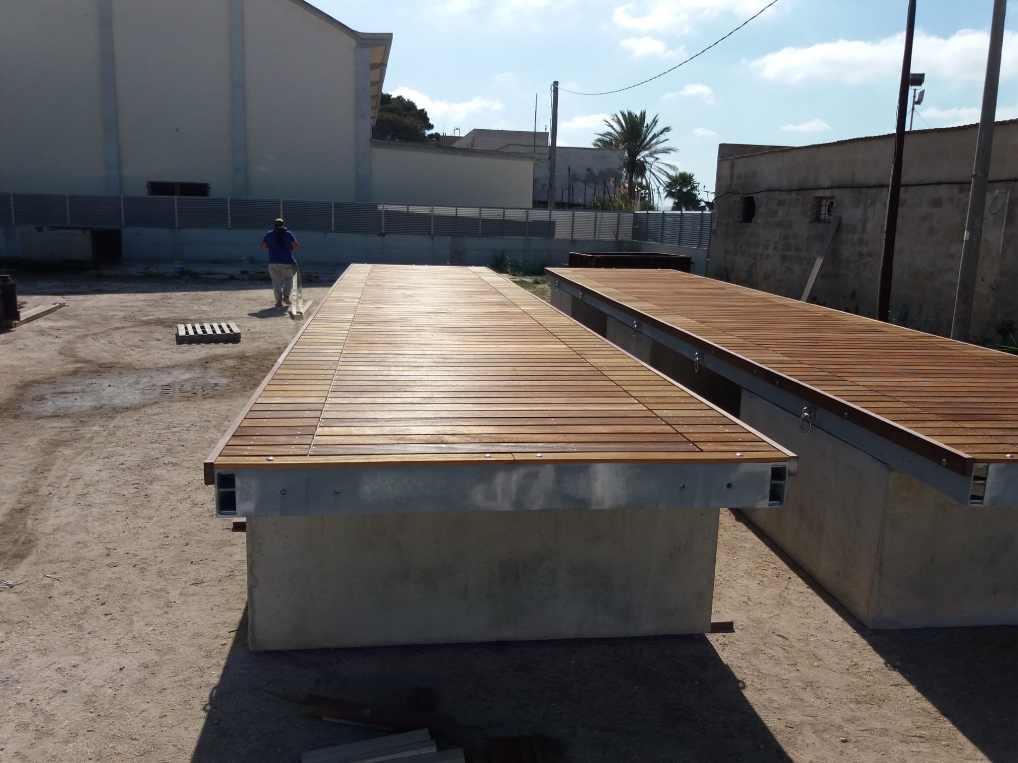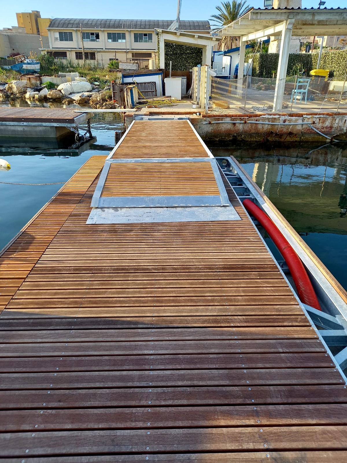 Fornitura e posa in opera di strutture per pontili galleggianti, con profili perimetrali in Upn tralicciati in Ipe. Le dimensioni sono varie, a seconda delle esigenze della committenza.
